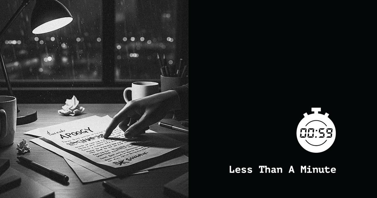 I’ve rewritten the same letter a dozen times today. Crossed out words, changed openings, started over. It should be simple-just an apology-but every version feels wrong. Too soft, too formal, too late. Now it’s dark outside, the ink’s drying in uneven lines, and I’m still sitting here, staring at the signature. I don’t know if I’m trying to make peace or confess. Maybe both.
